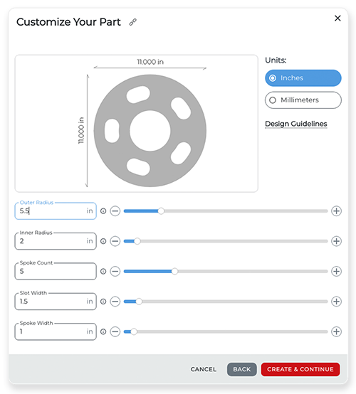 Try our free Online Parts Builder! Create a part, get instant pricing, and place an order in minutes.