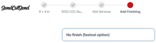 When ordering, choose No finish (fastest option) at the Add Finishing step in our instant pricing system before adding the parts to your cart.