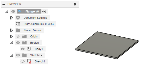 The Flange tool saves time by automatically converting a sketch to sheet metal using a selected sheet metal rule and setting the material thickness correctly in one step. We recommend using this method even if you don’t need flanges or bending services since it results in a better STEP/STP file.