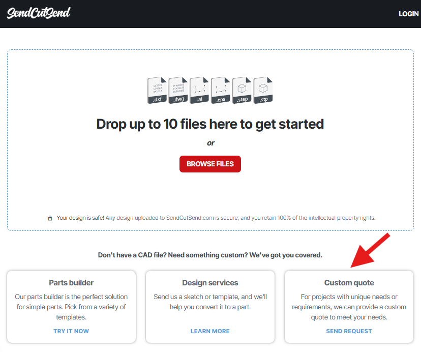 Learn more about getting started with SendCutSend! If you have more questions about how to get a custom quote, contact our Support team.