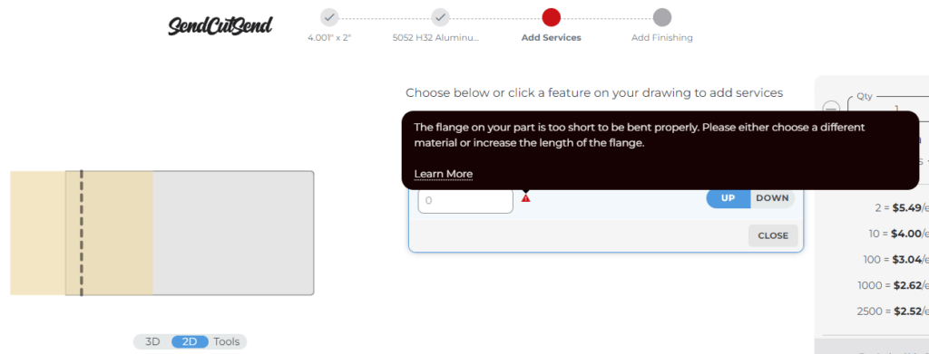 📄 See our Flange Requirements for Bending to learn how to measure flanges and find the exact spec for your material.