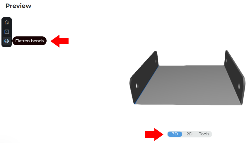 If desired, you can flatten or unfold your bent part in the 3D view by clicking Flatten bends in the 3D preview options on the top left.