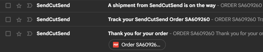 Whether you have set up a free SendCutSend account or checked out as a guest, the contact email address entered will receive order status updates.