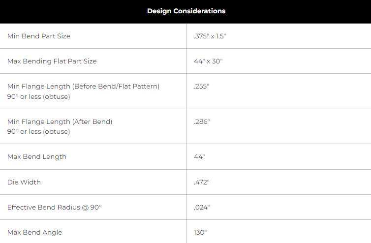 Each service we offer has minimum and maximum overall flat part sizes for processing. Take a look at our service size guidelines to confirm these limits by material and stock thickness: Processing Minimum and Maximum Sizes