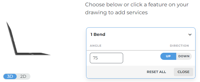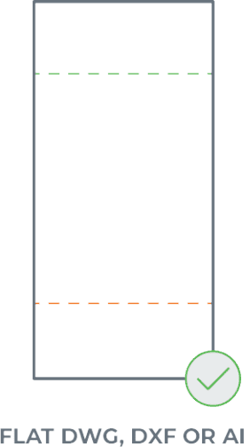 If you upload a 2D format file (DXF, DWG, EPS, or AI), ensure there are bend lines indicating the desired location for the center of each bend. We have more information in our bending design guidelines. If your design does include bend lines but they aren’t showing up, then check out these troubleshooting tips.