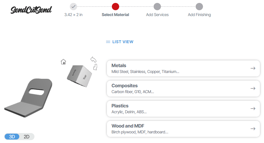 Often, sheet and plate materials can’t be selected in our pricing system because the overall flat part size is too large or too small for the material. You may also be restricted to selecting billet material if you upload a STEP/STP format file with a model of a part that includes 3D features requiring CNC machining. If you need your part laser cut, waterjet cut, or CNC routed from sheet or plate material, ensure your design meets our 3D file guidelines.