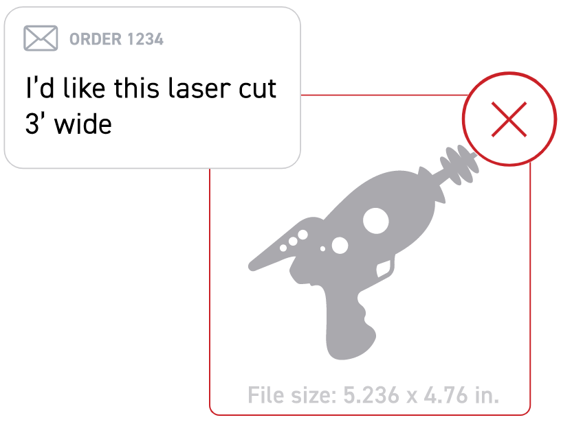 3. For pre-nested vector format files, remove any small parts that do not meet our flat part size requirements