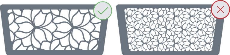 In the example below, you can see burn marks on the edges of this intricate design. To remedy this, we asked the customer to thicken the joining lines of the pattern.