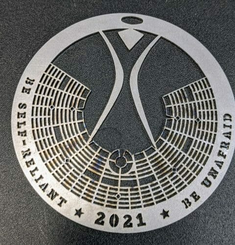 Our fiber laser is known for it’s accuracy and ability to cut small details, but, there are still limitations. Each cut means time that the laser is burning through the metal. On intricate designs with small bridges, this can result in the metal getting burnt edges and at times even warping.