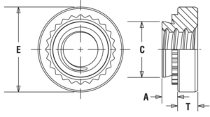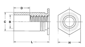 | Hole size in sheet +0.003″/-0.000″ (H) | 0.187″ |