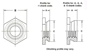 | Hole size in sheet +0.003″/-0.000″ (H) | 0.166″ |