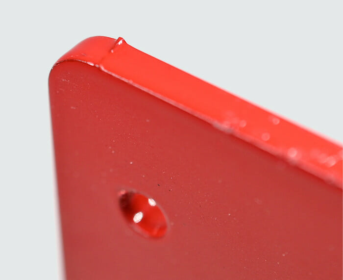 There should be a hole or cutout .063” (1.60mm) or larger in each powder coated part so it can be hung. Any holes or cutouts part of the design should not be less than .040” (1.02mm). Holes smaller than .040” or 1.02mm may “fill” with powder during the coating process.