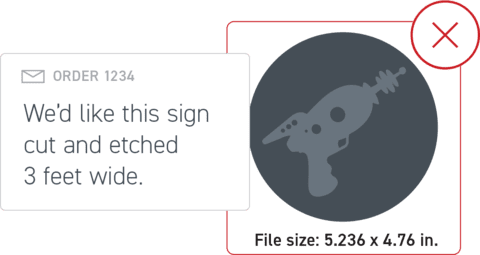 Your art should be sent to us at the exact size you want it cut (1:1 scale), in either inch units or mm units. We will not adjust your design based on written dimensions in the drawing, they are ignored by our system. We prefer to work in Imperial Units (inches) when possible, but metric units are acceptable as long as you remain consistent between your file units and the units you input for quoting.