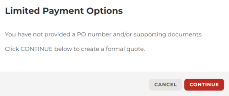 Formal Quotes can be used by customers who don’t have Net 30 terms, too! The process will be the same, except the credit card or Paypal information will need to be entered at the payment screen to start the order.