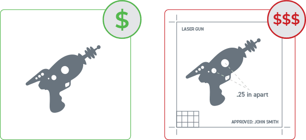 Basically, the only geometry that we need is the cutting path for the laser to follow. Check out our Design Guidelines for more details.
