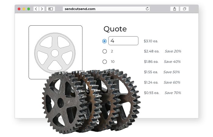 Increasing overall quantity makes the individual cost-per-part cheaper. While building a cart, you should see savings of 20% or more for 2 or more parts in most materials, and over 70% off in select materials at higher quantities. Parts must be identical (i.e., a quantity of 2 or more on a line item) to benefit from quantity pricing.