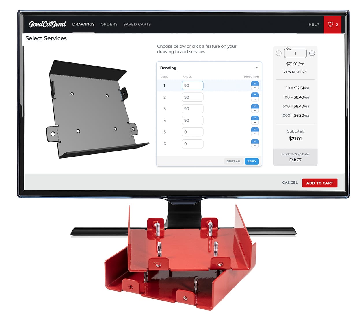To keep perpendicular flanges from clashing in a corner, use our Min Corner Relief Distance from Bend Line spec (pictured below). If the clearance between bend lines meets or exceeds that value for your chosen material thickness, you’re in the clear.