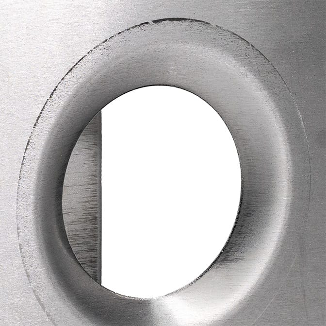 By creating a flared geometry around a hole, dimple forming distributes stress more evenly across the sheet metal. This reduces the likelihood of deformation under load and increases the overall stiffness of the part, making it more durable in demanding applications.
