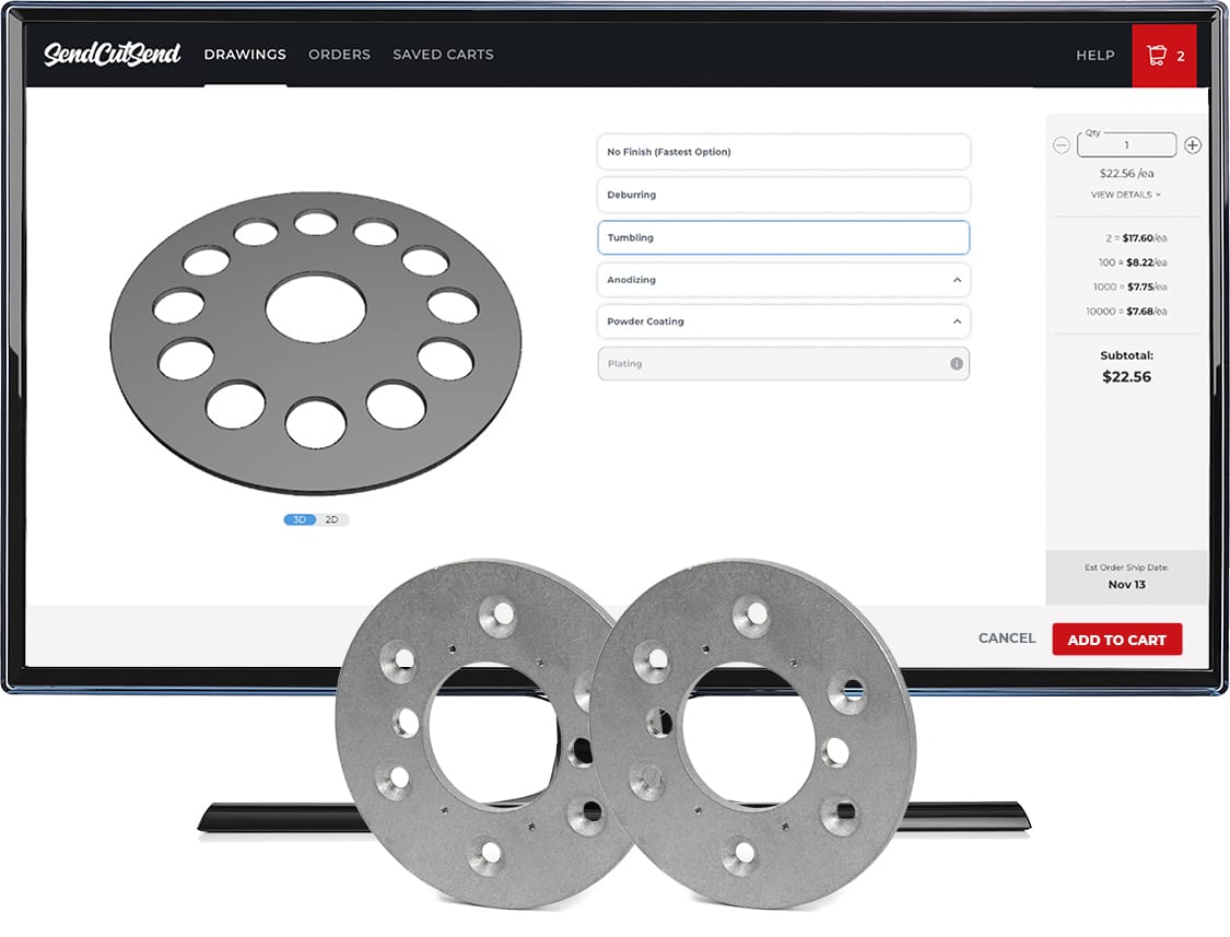 With our team of highly trained machinists and our state-of-the-art manufacturing technology, we’ve made it easier than ever to tumble your parts.. When you upload your design to our app, simply select the “Tumbling” option during the checkout process and you’ll get instant pricing!
